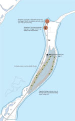 hvidt gårdanlæg op, tydeligt på den smalle landtange.